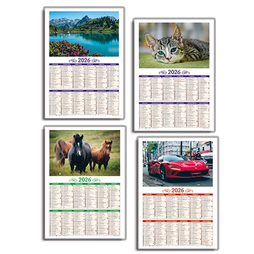 297x420mm-es plakátnaptár, a fejrészen többféle színes fotóval az alsó részen egész éves naptárral, névnapokkal, ünnepnap kiemeléssel.